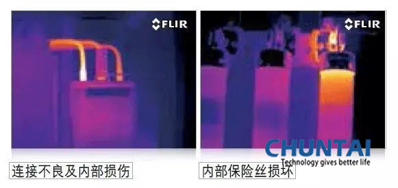 红外热像仪常用于电气检查。电气连接松脱时,电流受阻,于是可能导致温度增加。这种情况可导致部件故障,进而可能导致计划外停机和人身伤害。此外,故障发生前,电网效率变低,电能便致使热量产生,进而出现不必要的损失。